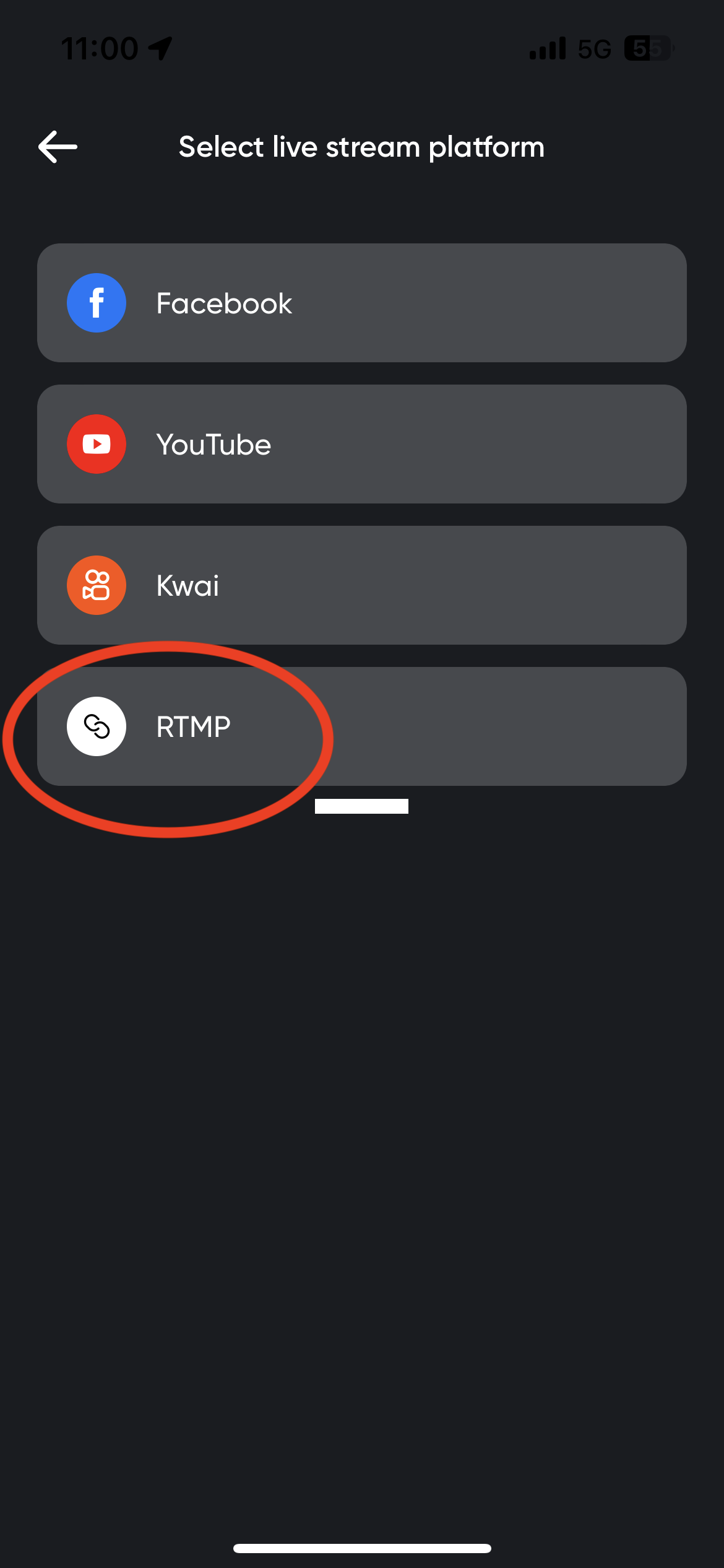 - Select RTMP.