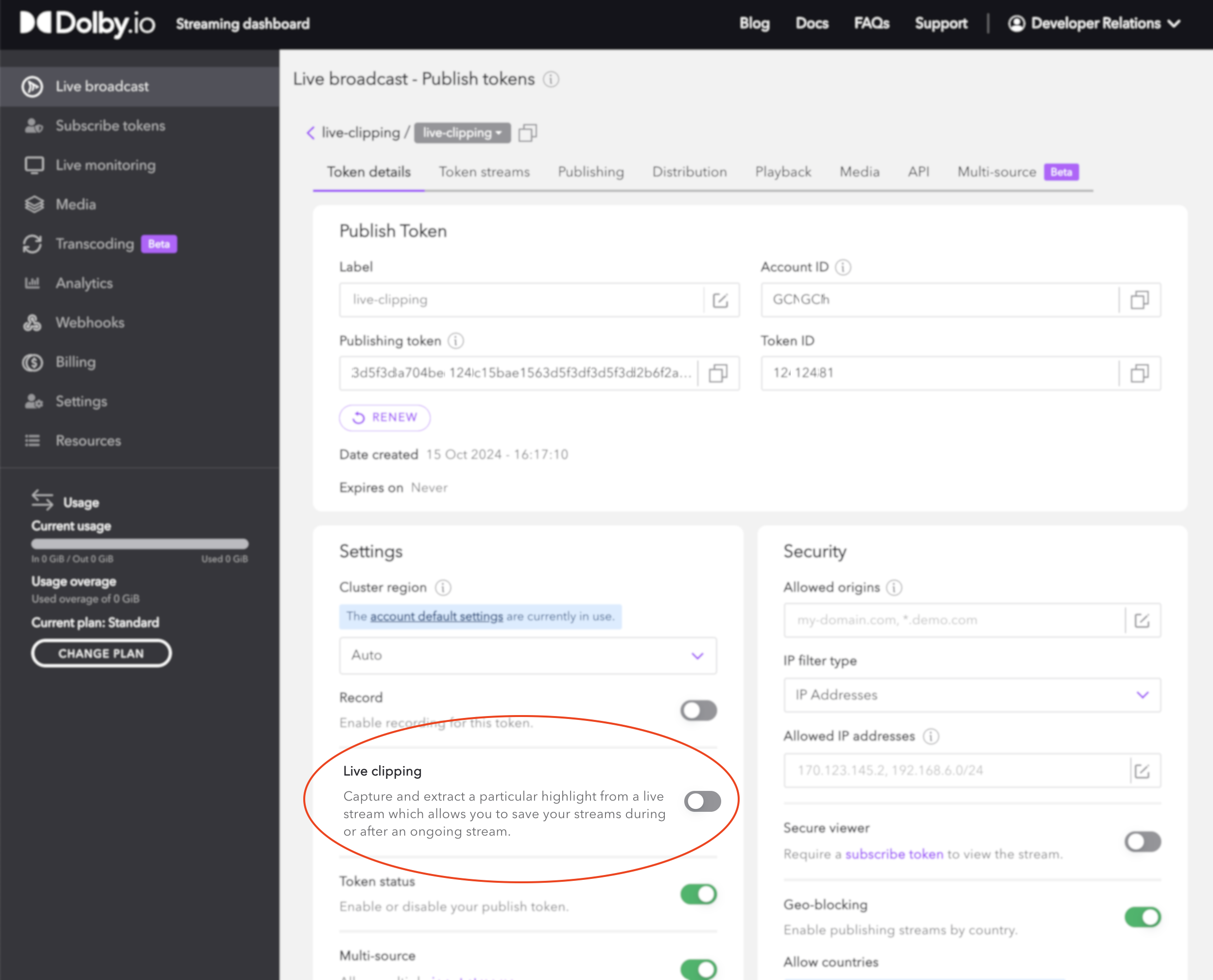 With this dashboard update you can now find a new Distribution tab within the publish token with settings that allow you to modify how the CDN distributes the stream to end viewers.