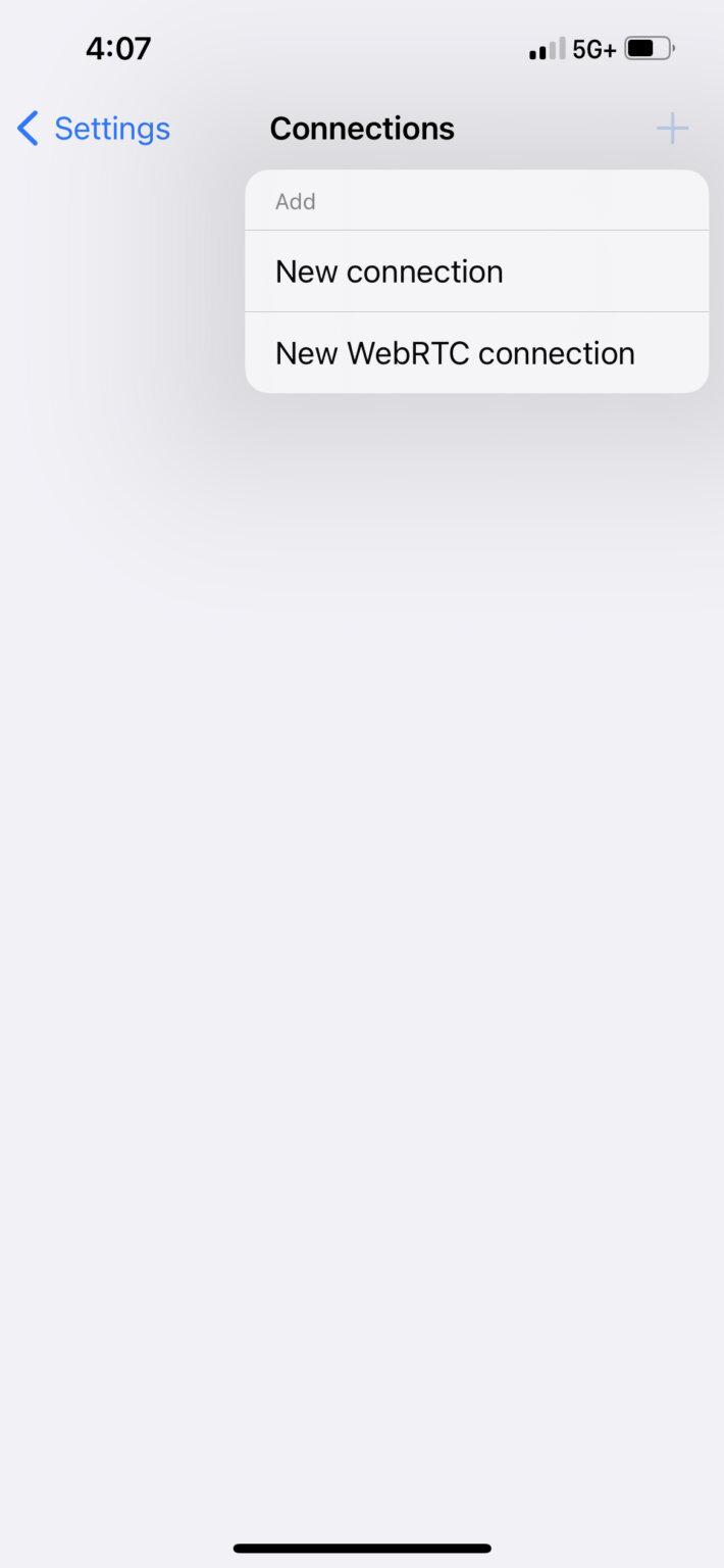 +button to add a New WebRTC connection.