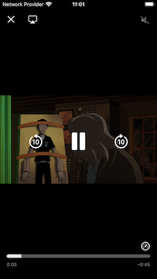 | Transitioning from an inline player to fullscreen on Android. | Transitioning from an inline player to fullscreen on iOS. |