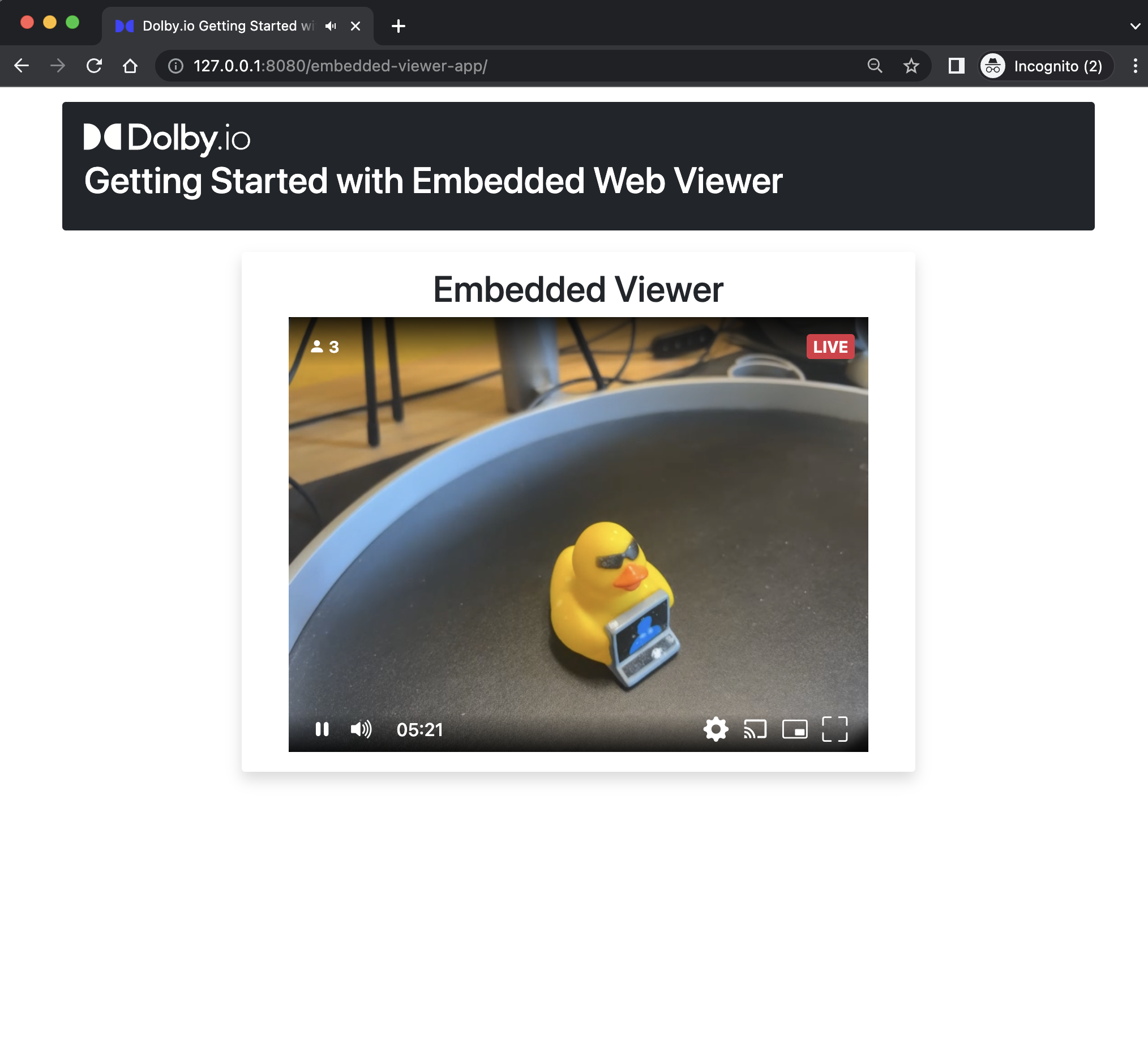If you start broadcasting using the Dolby.io Dashboard as you did in Part 1, you will then have a simple web app with video playback to continue customizing.