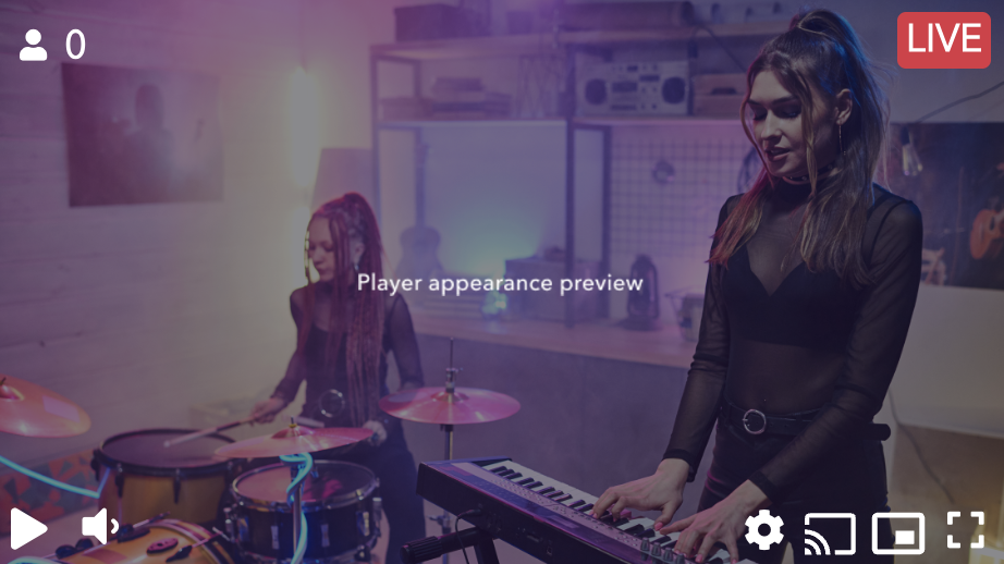 The player is similar to the Live Broadcast application in the dashboard but is for the audience to use to view the published stream.