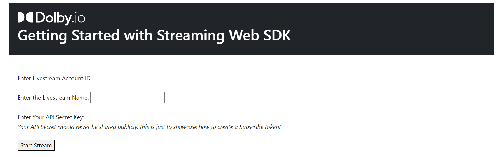 <title>Dolby.io Getting Started with Streaming Web SDK</title>