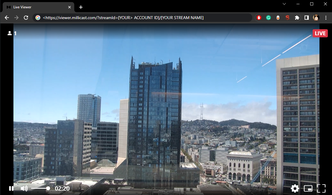 https://viewer.millicast.com/?streamId=[YOUR ACCOUNT ID]/[YOUR STREAM NAME]
