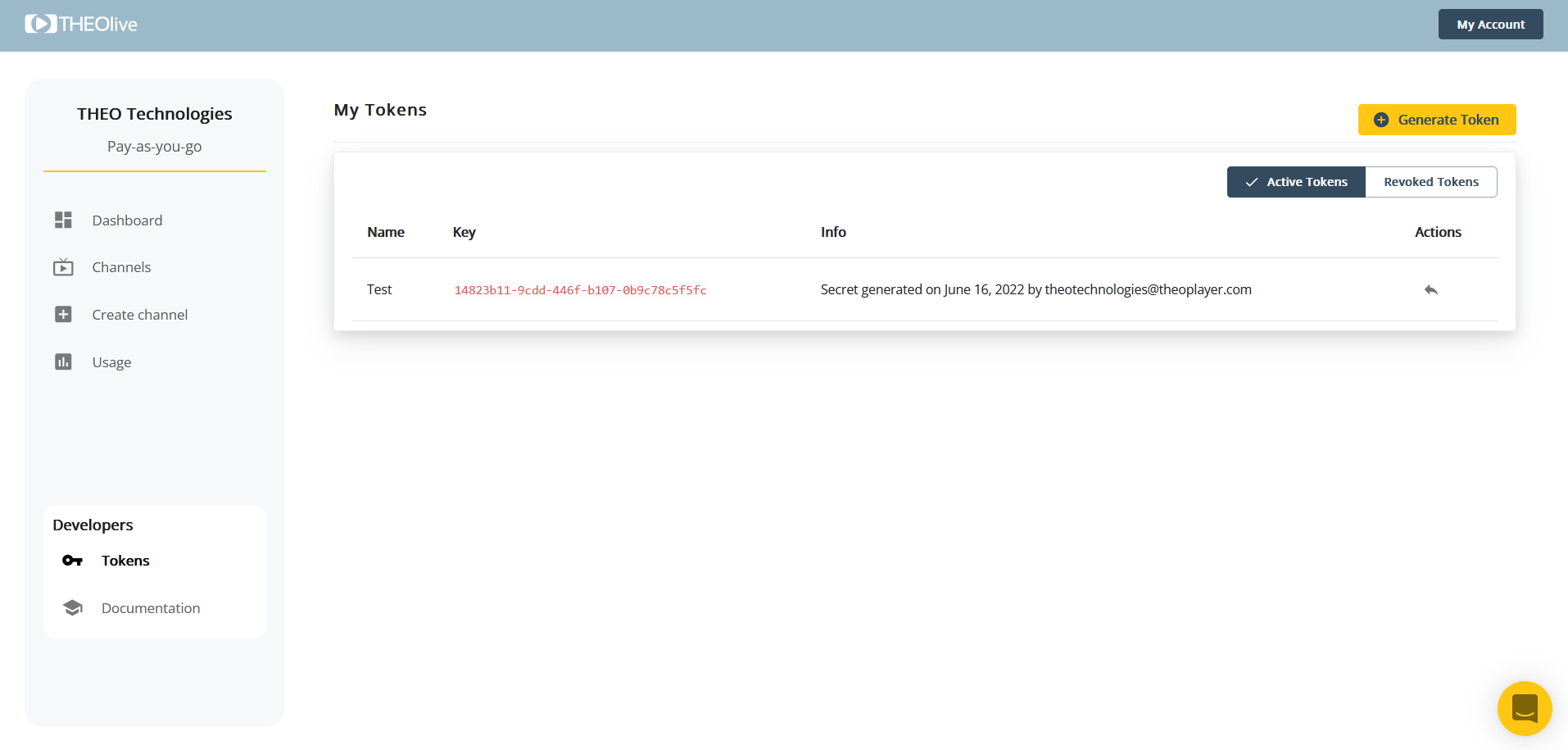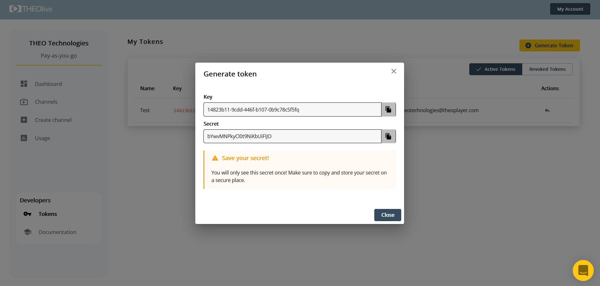 To generate a token–secret pair, you must first have an account on the THEOlive management console.