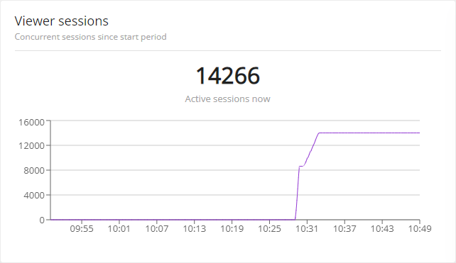 This graph displays the number of concurrent viewer sessions during the selected time period. It also highlights the current number of active sessions, giving you real-time insight into how many viewers are watching your live stream at any given moment.