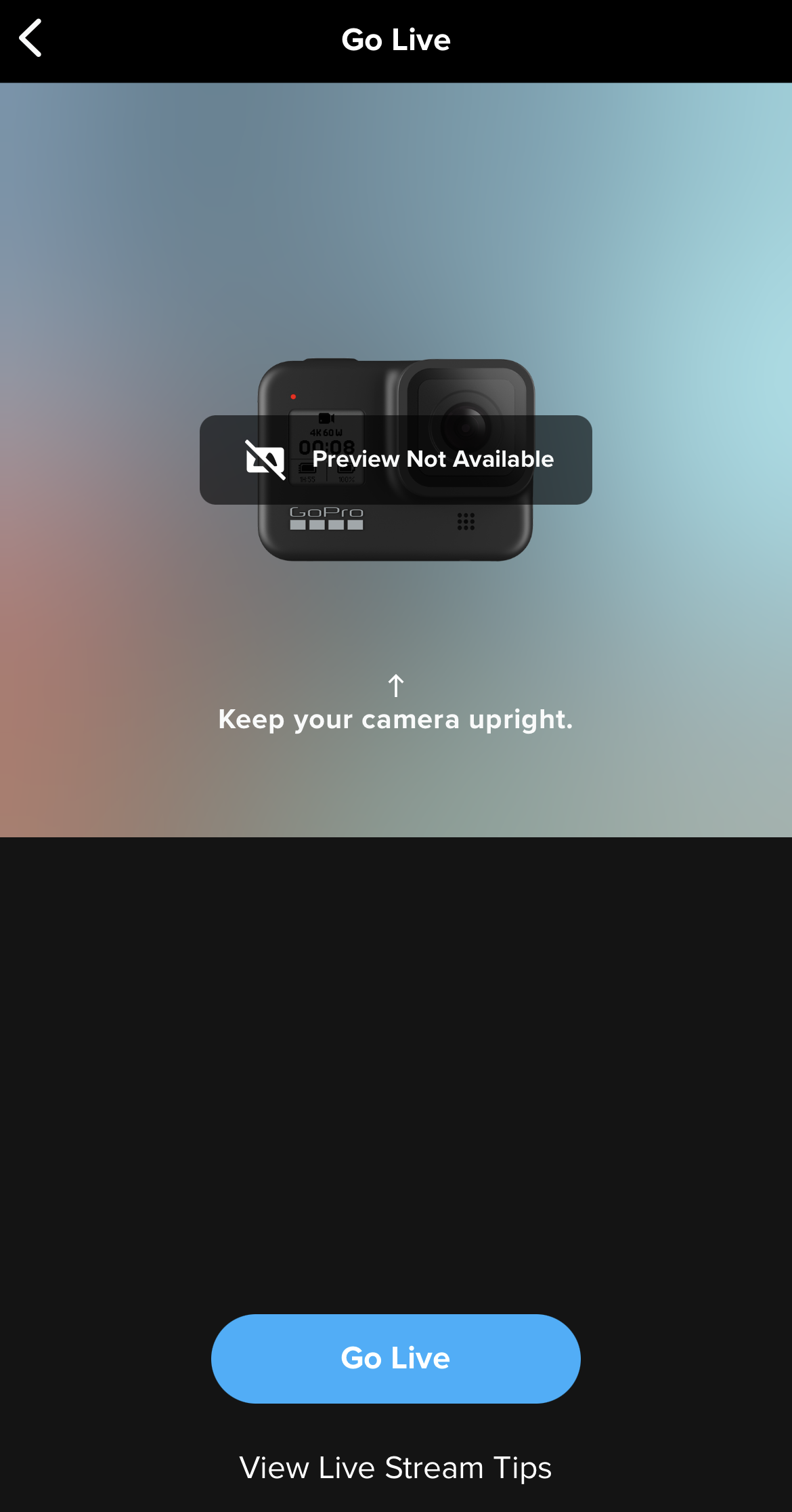 - Select Live Stream While Connected to Camera