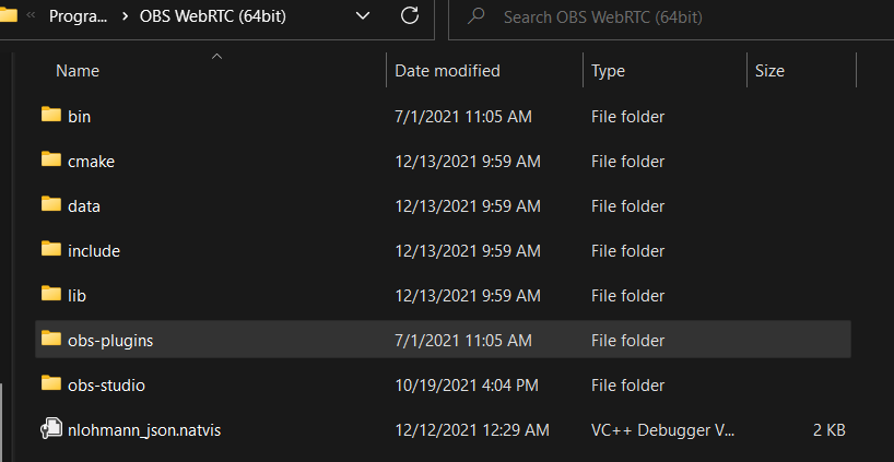 OBS WebRTC default location.C:\\Program Files\\OBS WebRTC (64bit)\\obs-plugins