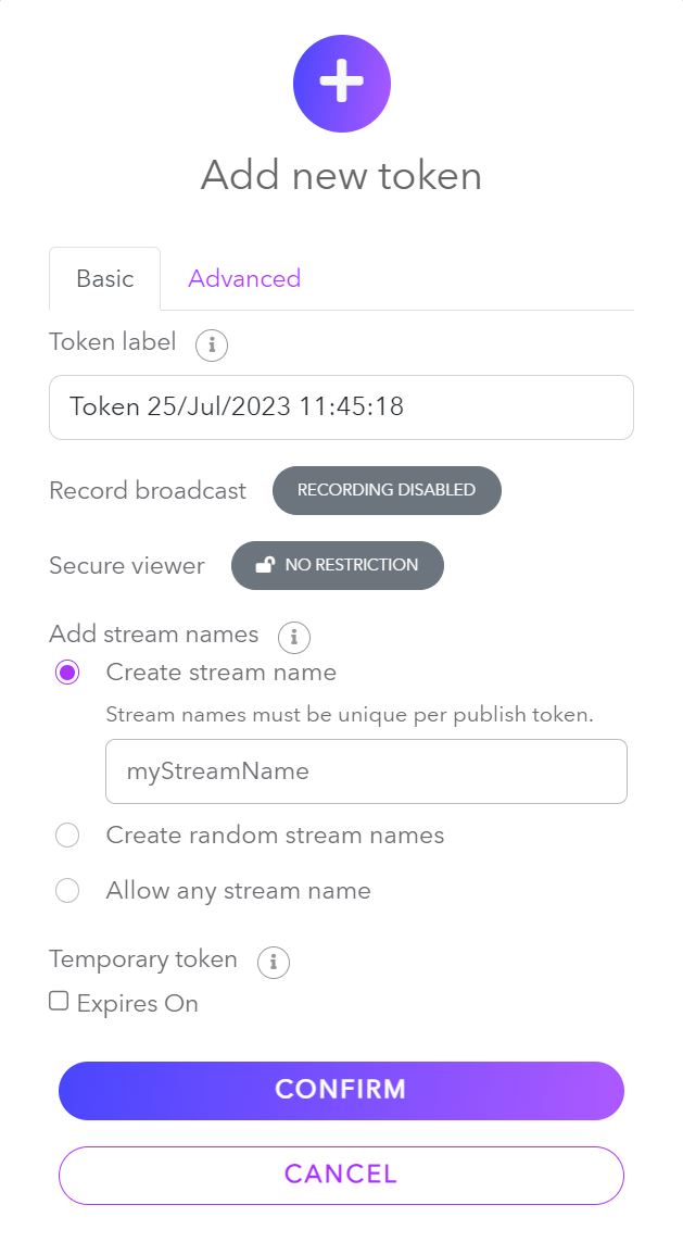 Before we can create a Subscribe token, we must first have a stream that requires a Subscribe token. These streams are referred to as Secure streams and need to be enabled within a Publish token by enabling "Secure viewer". To learn where to enable "Secure viewer", check out this guide on creating a Publish token.