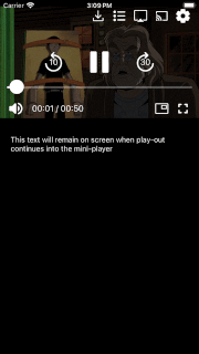 <Text style={{ color: '#ffffff' }}>This text will remain on screen when play-out continues into the mini-player.</Text>