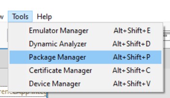 - In Tizen Studio, make sure to install the Tizen package extensions:
