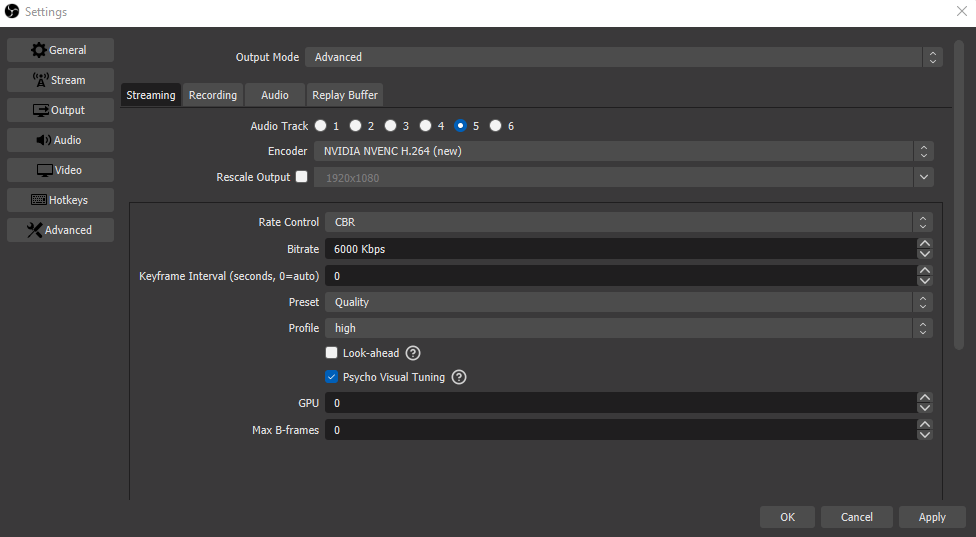 - Go to the output settings and select Output Mode > Advanced.