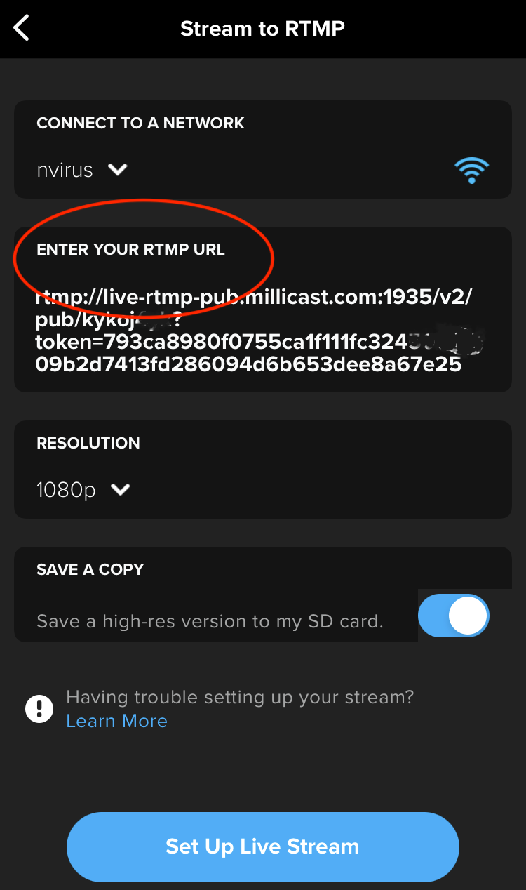 If you are using an action camera that is not listed, you should be able to use similar settings for configuring streaming with an RTMP ingestion source.