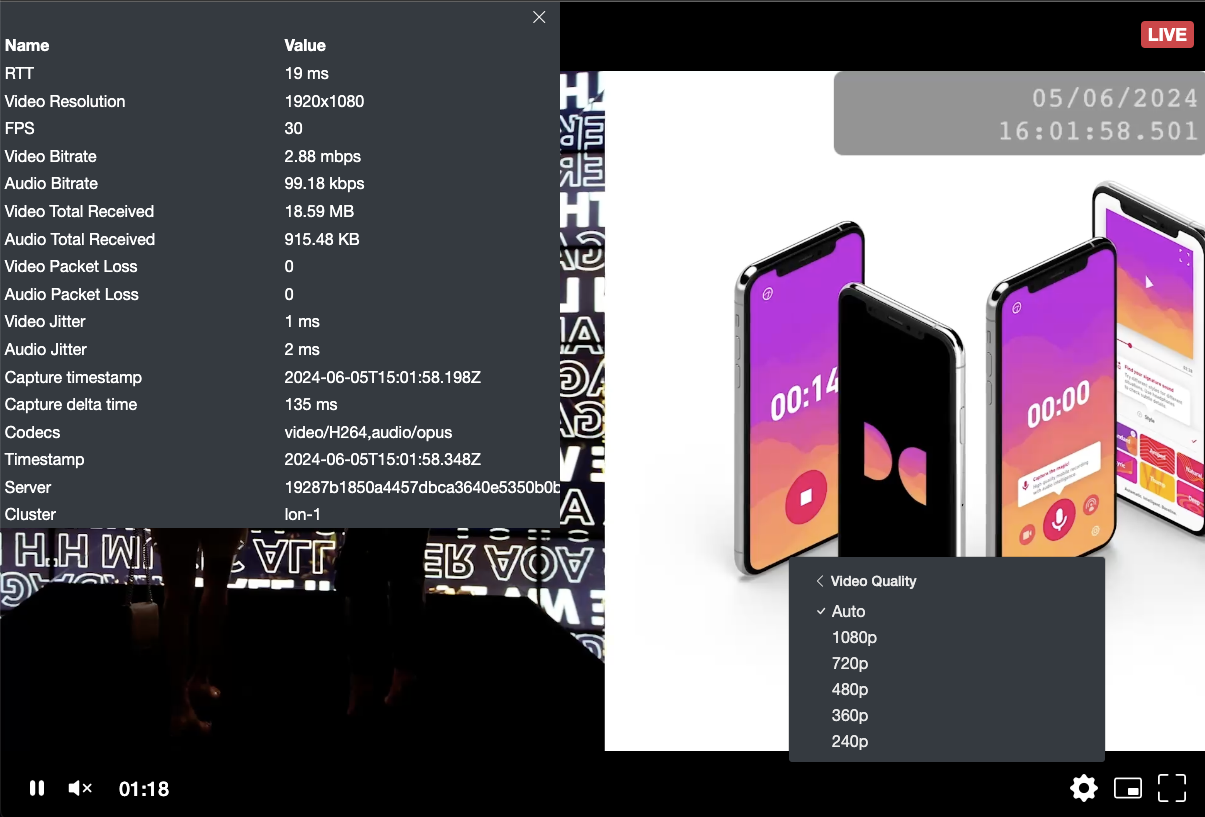 The Dolby Millicast Cloud Transcoder is specially tuned for delivering the highest quality at the lowest latency for the h264 codec.