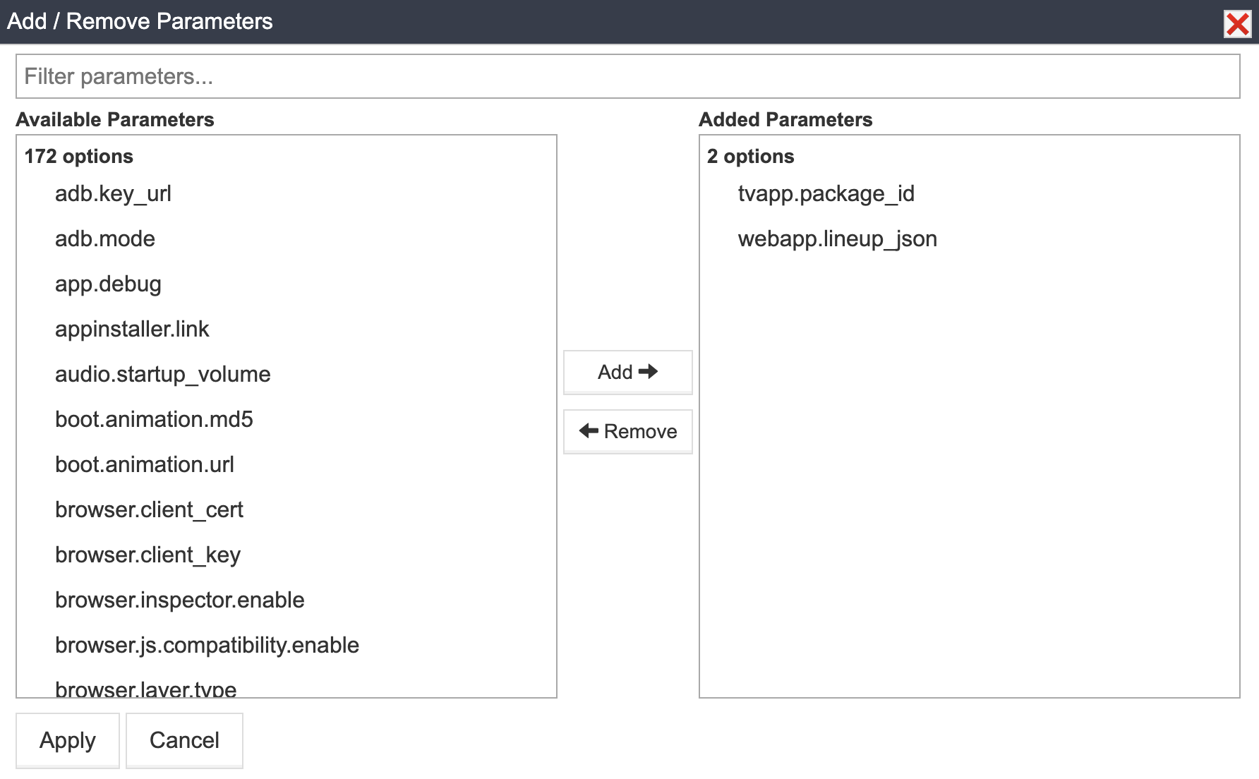 Click the + Add / Remove Parameters button to add these Application Settings: