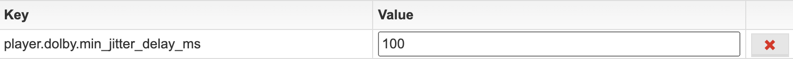 For the optional player.dolby.min_jitter_delay_ms parameter, you can specify the amount of delay in milliseconds to be added to your stream.