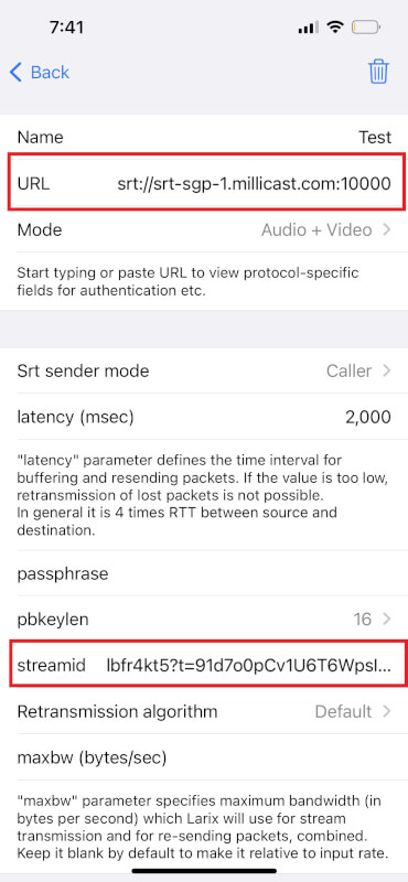 streamidto your SRT stream ID.