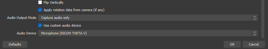 - Select custom audio at the bottom of your scene selection if you want audio from your 360 camera.