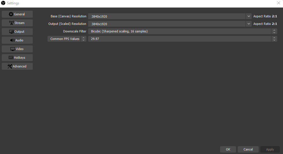 - Go to Video Settings and match the base to output 3840x1920 of the Ricoh Theta V.