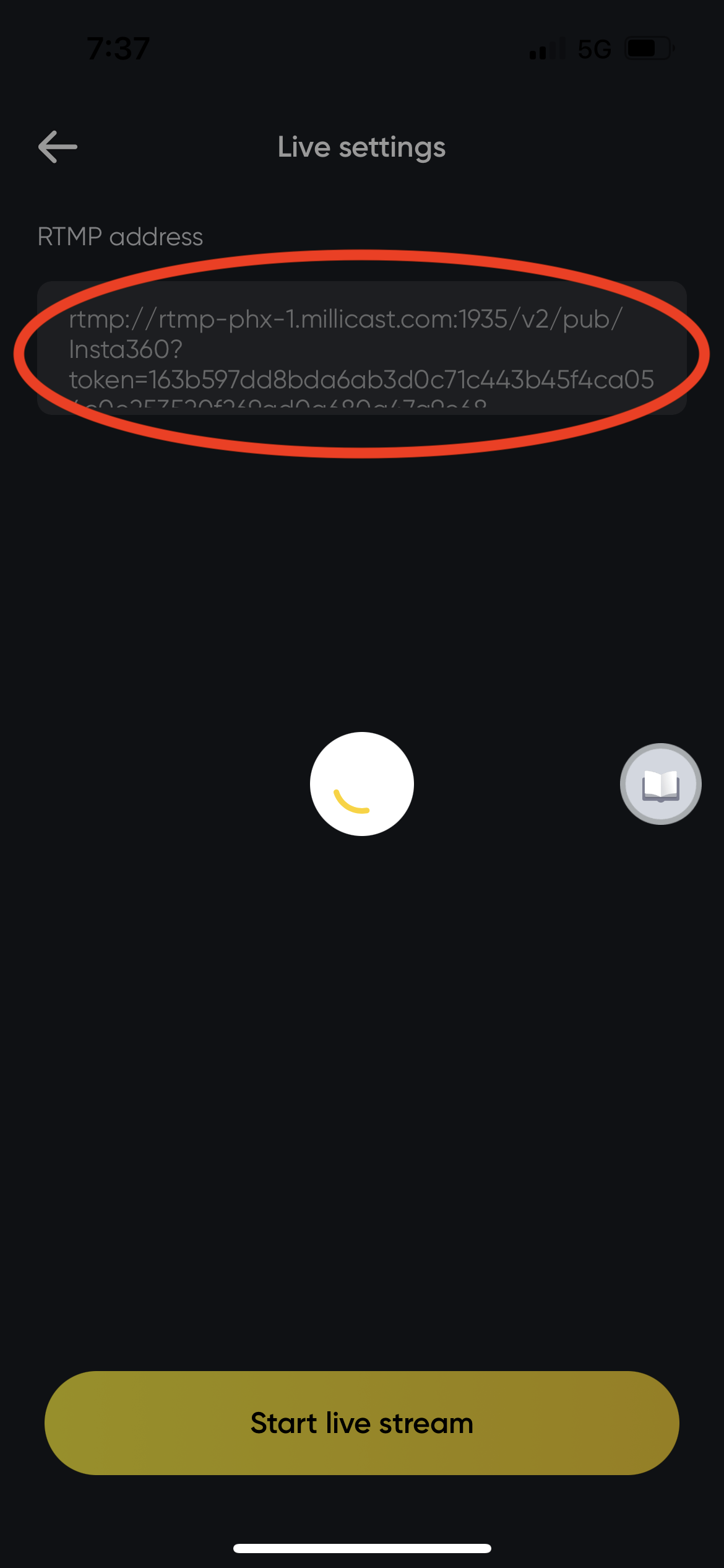 - Tap the shutter button, and start livestreaming! (Note: During the live stream, please keep the app running in the foreground.)