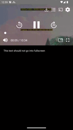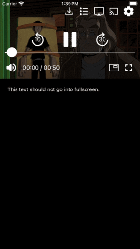 | Transitioning from an inline player to fullscreen on Android. | Transitioning from an inline player to fullscreen on iOS. |