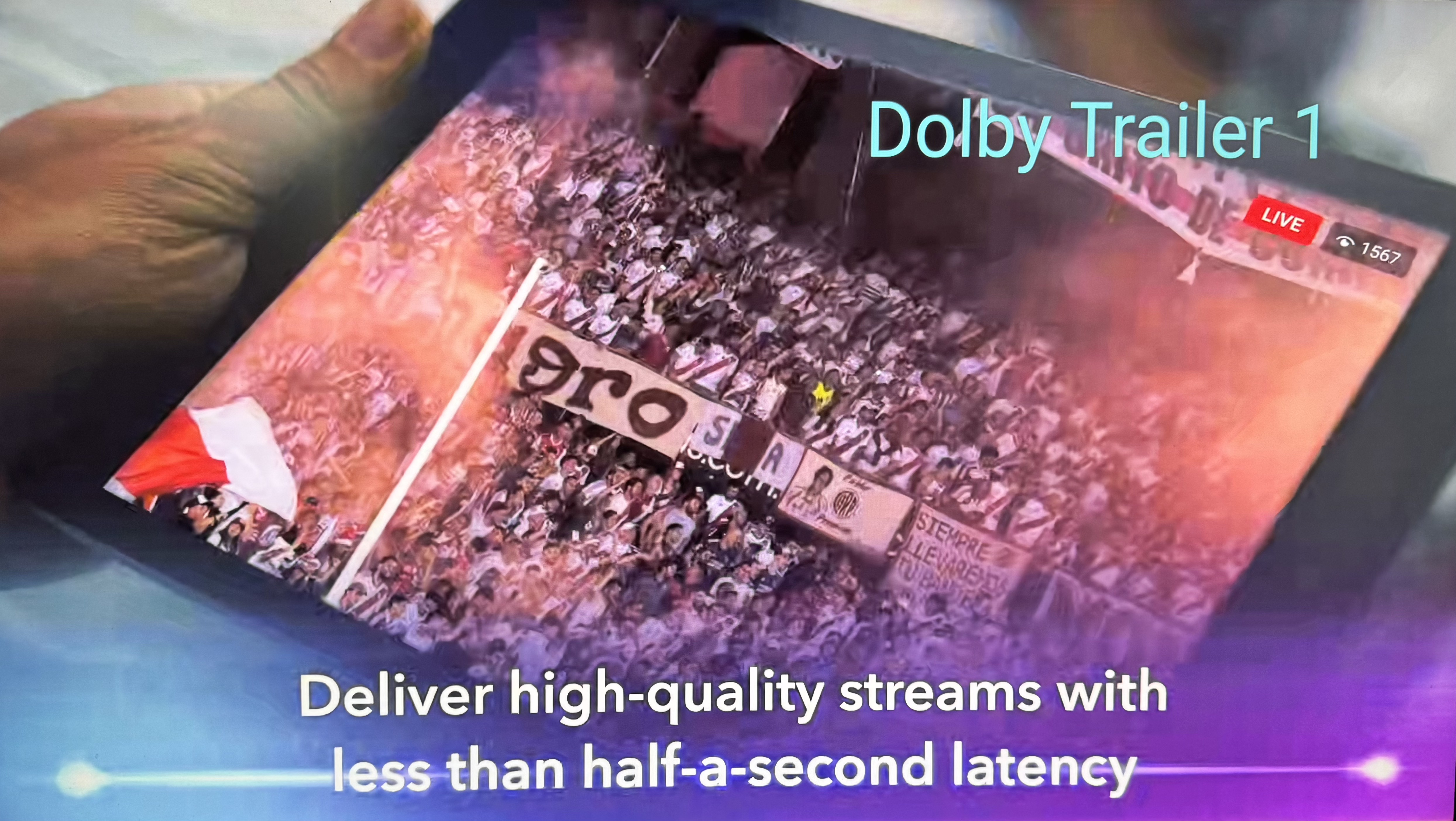 The url follows the pattern dolbyio://{Account ID}/{Stream Name} and the name and desc are displayed on the screen briefly upon changing channels.