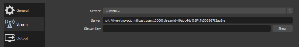 | Stream Key | This is the SRT stream ID for your publish token. |
